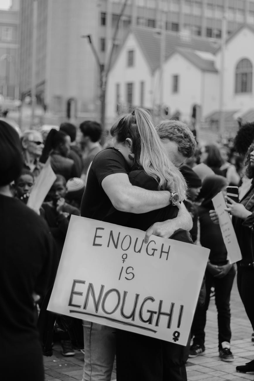 więc teraz, w tym momencie, tak całkiem na serio, staramy się by nic więcej nie umknęło naszej uwadze. próbujemy panować nad sytuacją. uczynić zadość niepisanym wymogom związanym z okazywaniem człowieczeństwa.